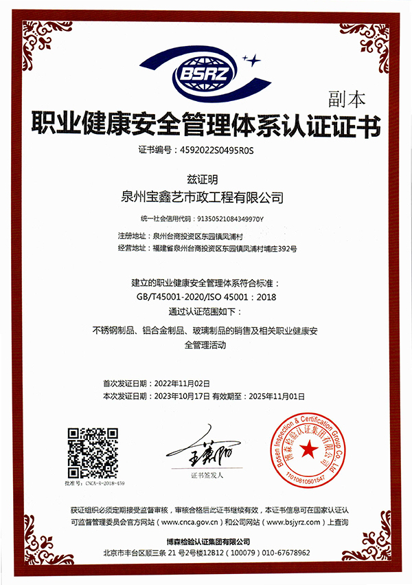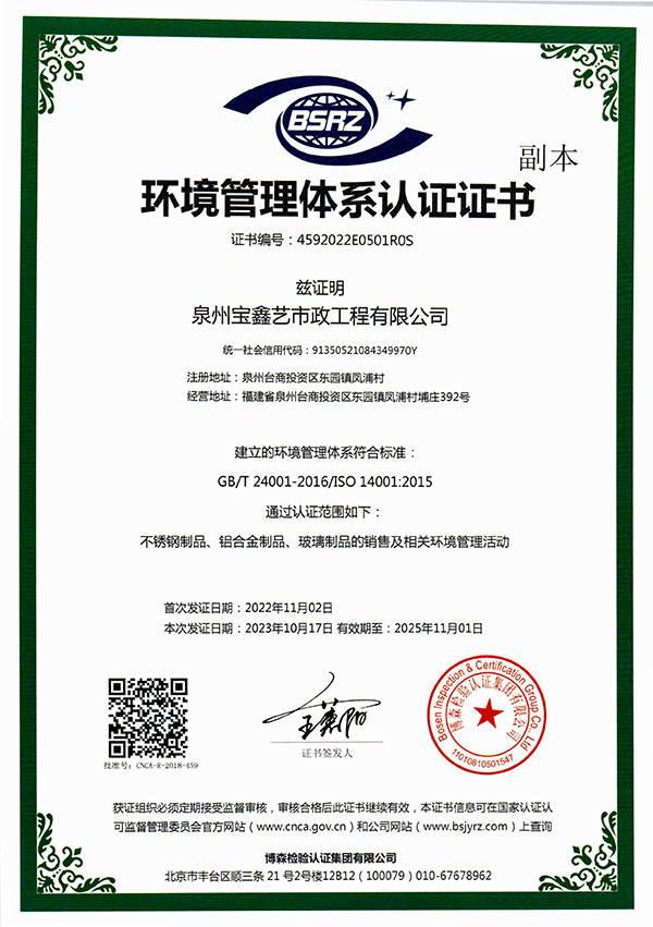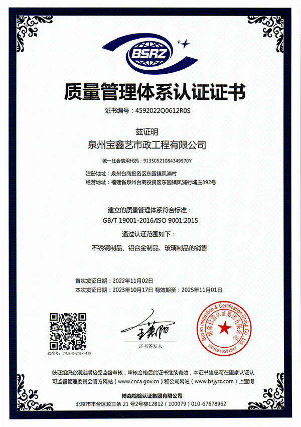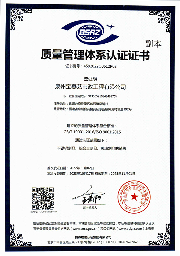 泉州寶鑫藝市政工程有限公司座落于歷史文化名城泉州,地理位置優(yōu)越,交通十分便利。技術(shù)力量雄厚,制作設(shè)備精良,加工工藝精湛,是一家集設(shè)計(jì)、研發(fā)、生產(chǎn)、銷售、安裝、服務(wù)為一體的大型金屬裝飾工程公司。